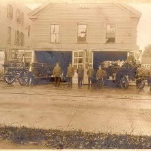 Broad Street Fire Station. Mounted photograph. Written on back: Left to right- John Mack, Bill Capron, Warren Bristol.